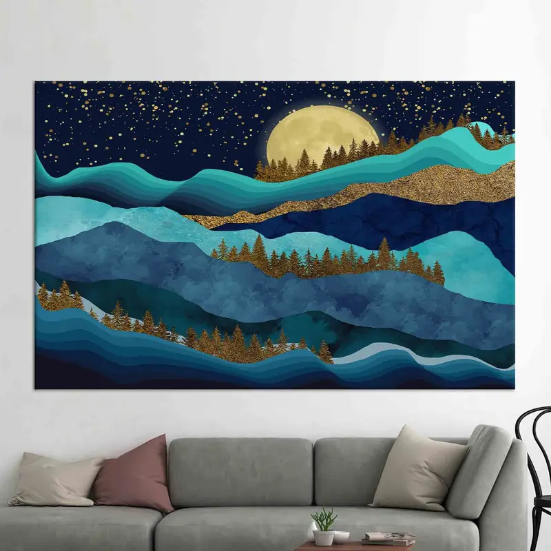 Luxury Gold Mountain Landscape Printed Canvas - Contemporary Art