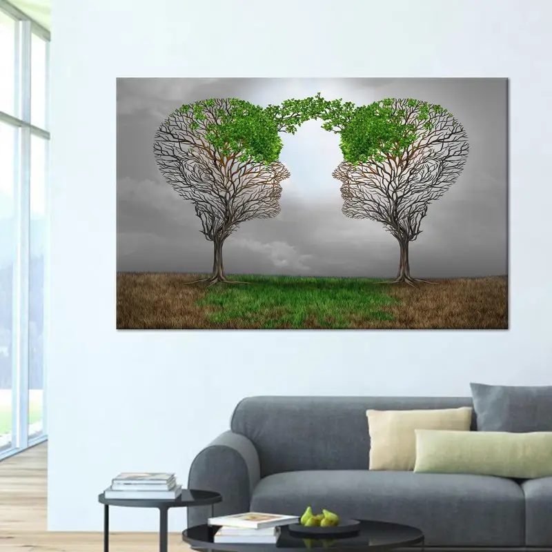 Hopeful Spring Canvas: Abstract Tree Couple Therapy Room Art