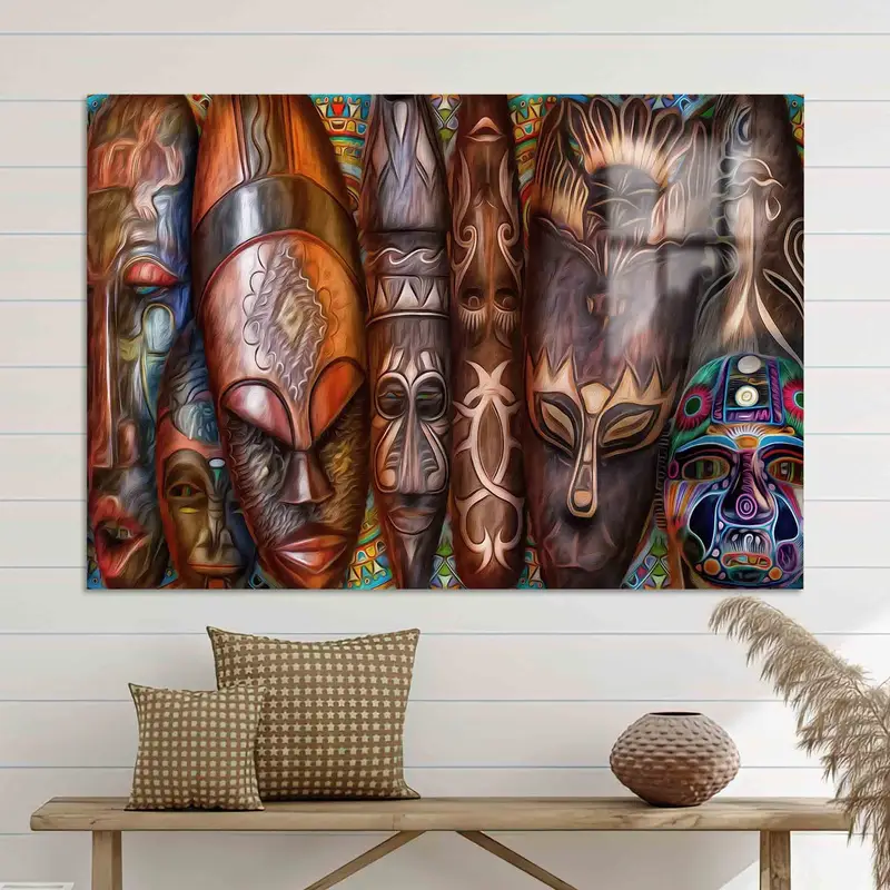 Trendy Brown Abstract African Mask Canvas Print - Elegant Decor