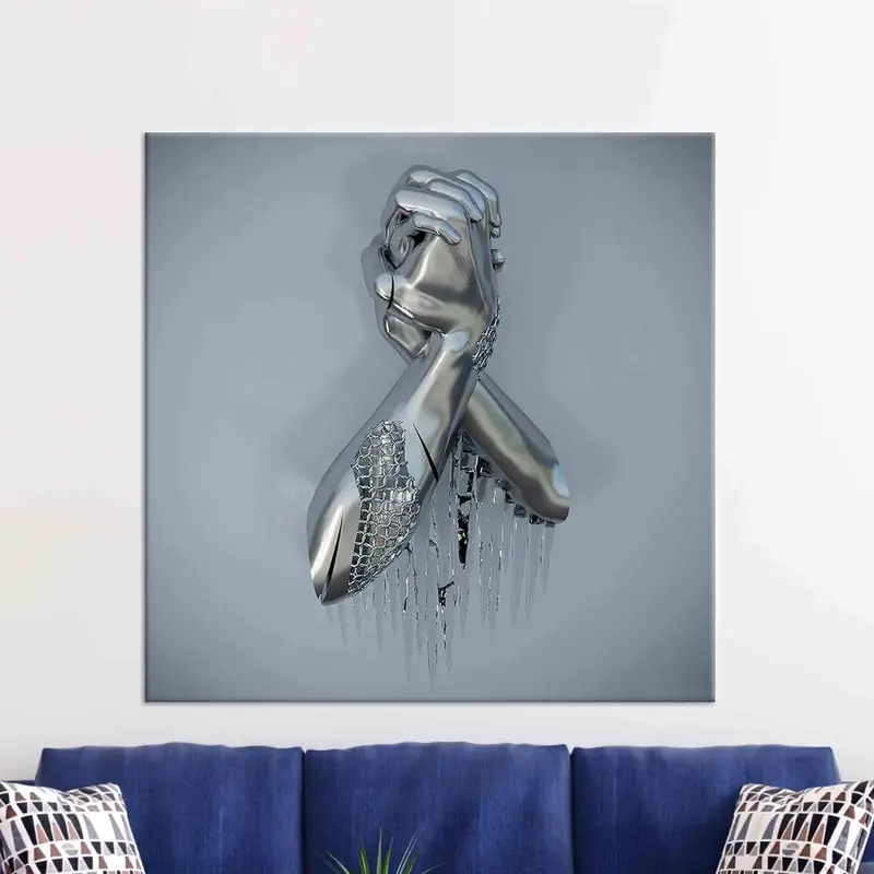 Trendy Metallic Hand-Printed 3D Silver Canvas Art