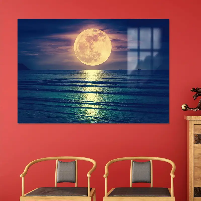 Contemporary Seascape Canvas: Moonlit Beach & Super Moon Glow