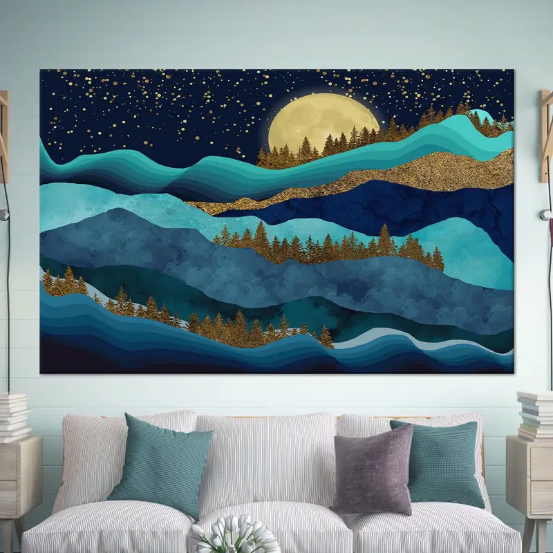 Luxury Gold Mountain Landscape Canvas Print - Contemporary Art