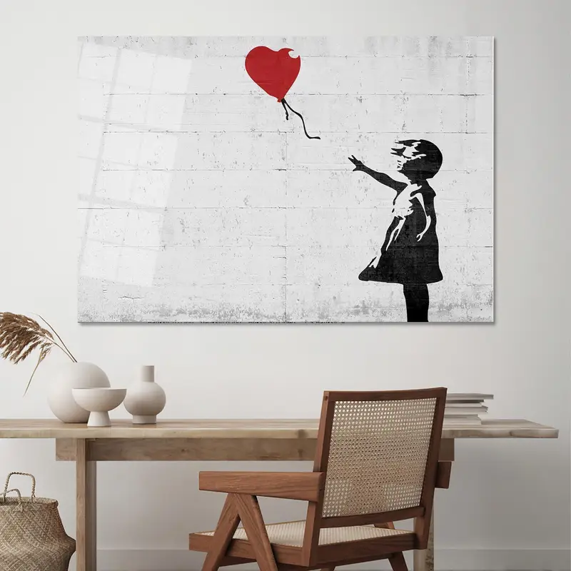 Contemporary Banksy Girl Graffiti Canvas with Heart Balloon