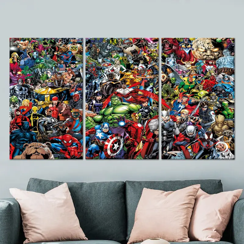Marvel Superhero Canvas: Vibrant Game Room Art for Boys