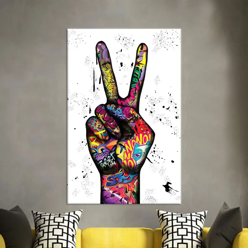 Trendy Colorful Abstract Canvas: Peace Finger Graffiti Art Print