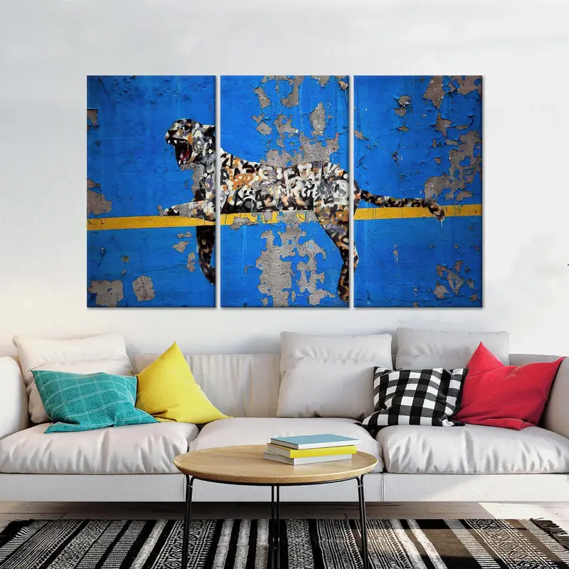Elegant Bronx Zoo Leopard Graffiti Blue Printed Canvas