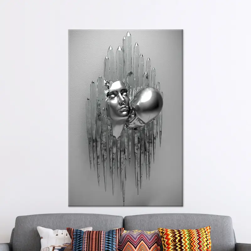 Romantic 3D Metallic Couple Canvas - Elegant Valentine's Gift