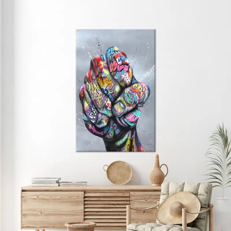 Inspirational Colorful Fist Canvas: Graffiti Art Printed Masterpiece