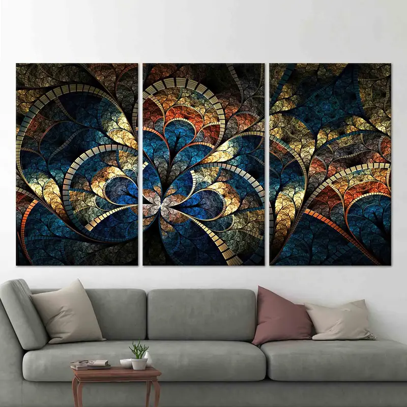 Trendy Fractal Gold Canvas: Psychedelic Shimmery Stained Glass Mosaic