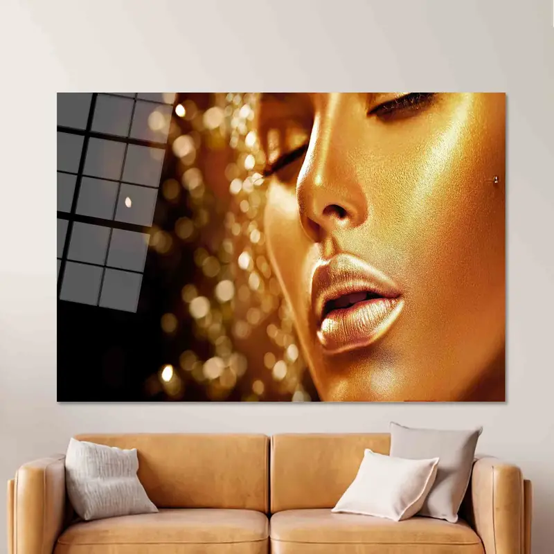 Golden Woman Beauty Canvas: Elegant Printed Art for Home Decor