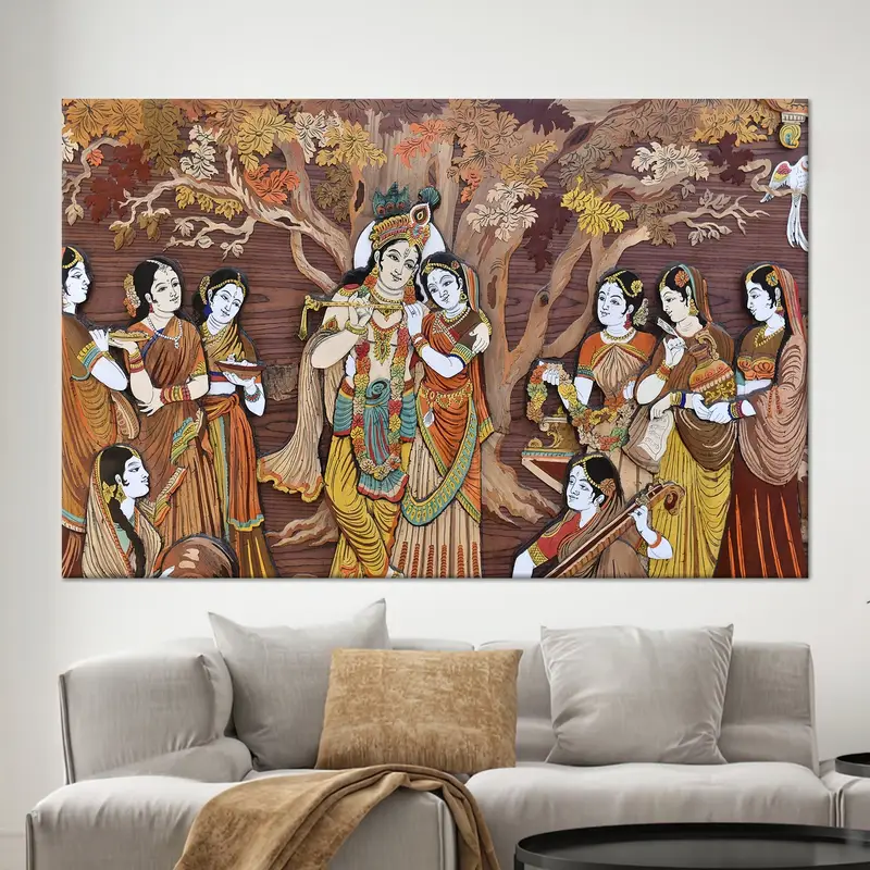 Sacred Radha Krishna Canvas: Divine Hindu Art Print