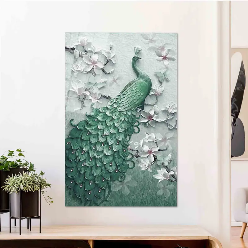Modern Luxury Peacock Floral Canvas: Elegant Peacock Lover Gift