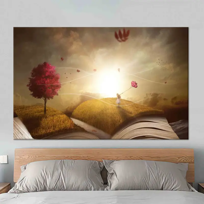 Elegant Abstract Tree Landscape Canvas Print for Book Lovers