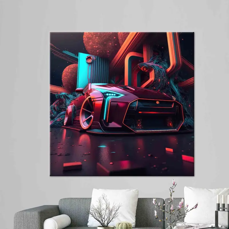 Futuristic Grit: Neon Dreams Abstract Car Canvas Print