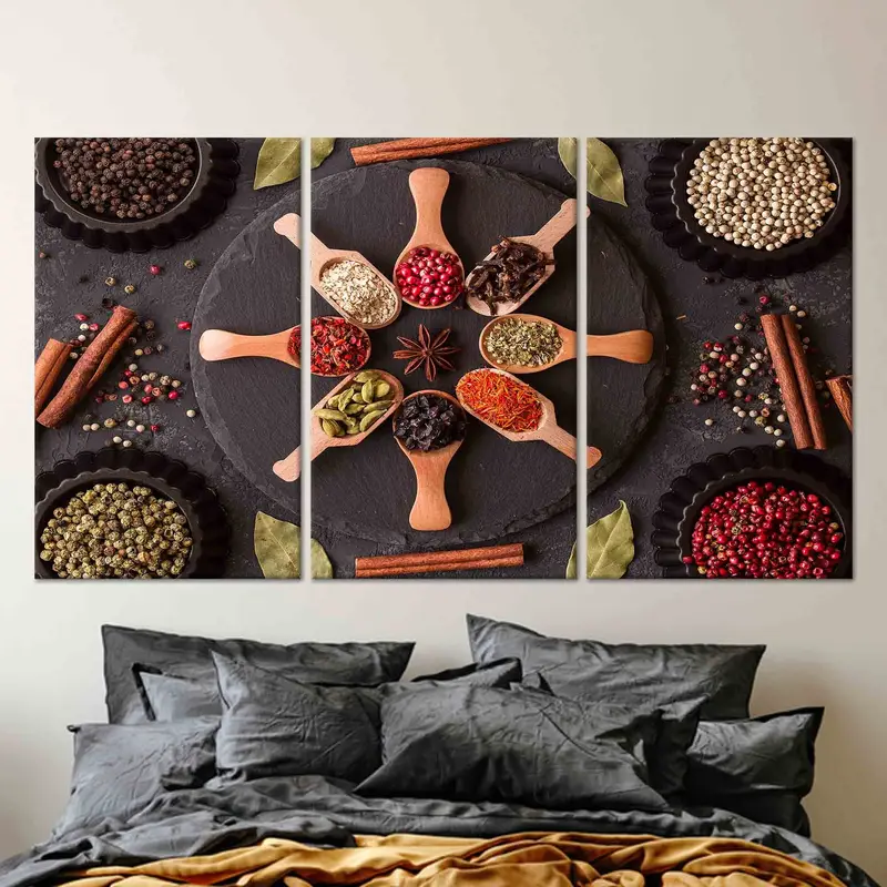 Vibrant Indian Spices Canvas: Colorful Kitchen Art Print
