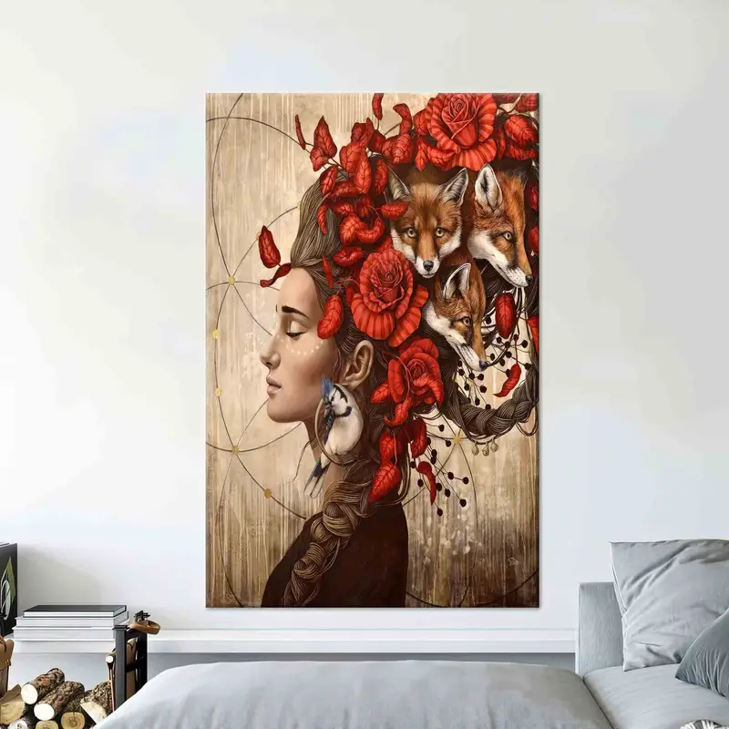 Elegant Canvas Art: Abstract Woman and Bird Print