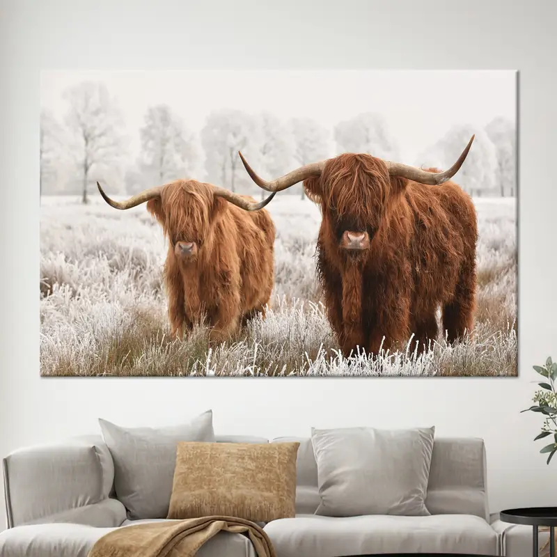 Elegant Highland Cow Canvas: Scottish Farmhouse Coastal Decor