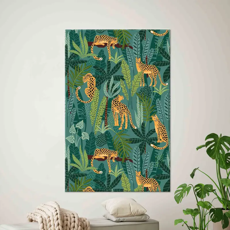 Green Tiger Lover Boho Botanical Tropical Canvas Print