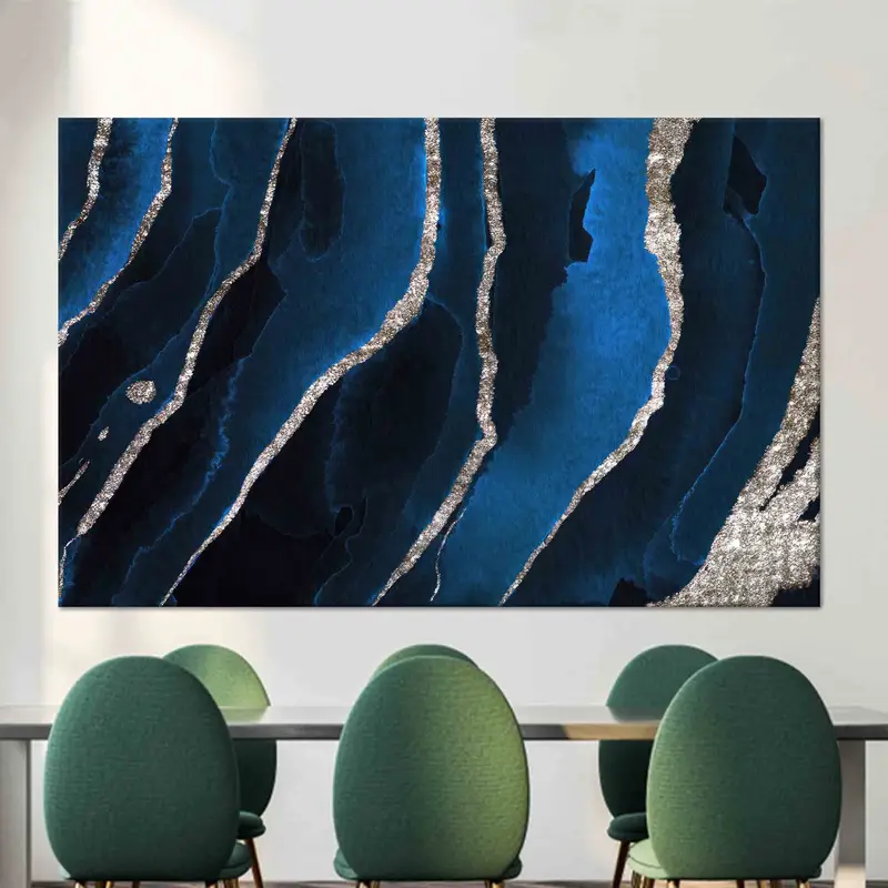 Luxury Marble Abstract Canvas: Blue & Silver Printed Art
