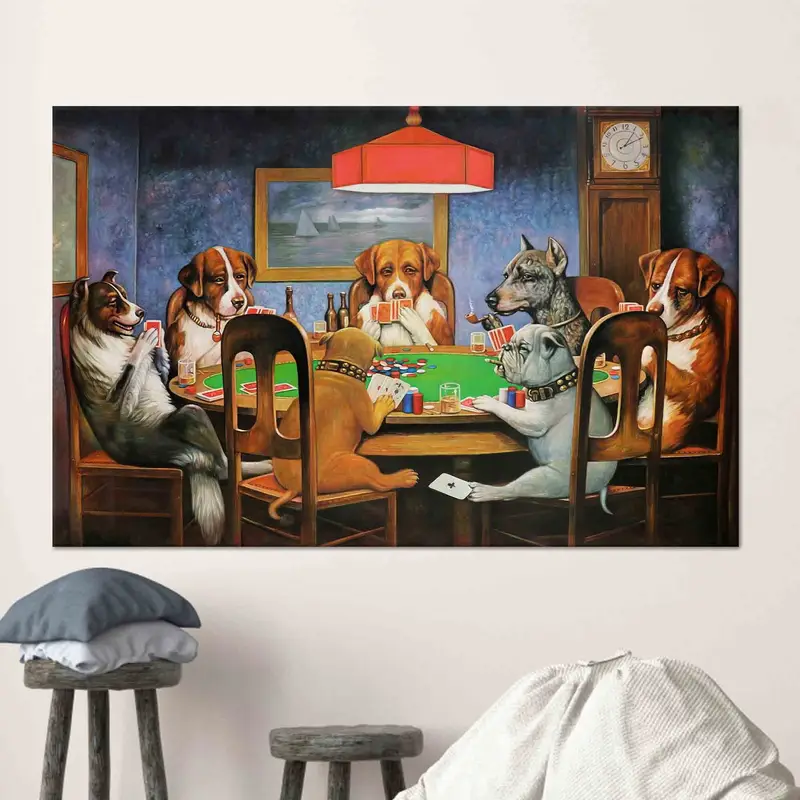 Elegant Canvas: Dogs Playing Poker in Gaming Room Ambiance
