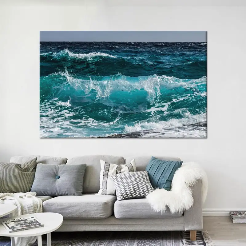 Elegant Coastal Seascape Canvas: Ocean Waves Farmhouse Decor