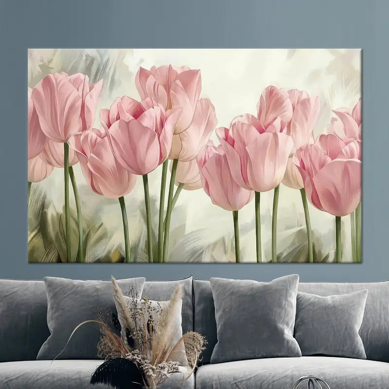 Modern Pink Tulip Canvas: Trendy, Elegant Flower Art Print
