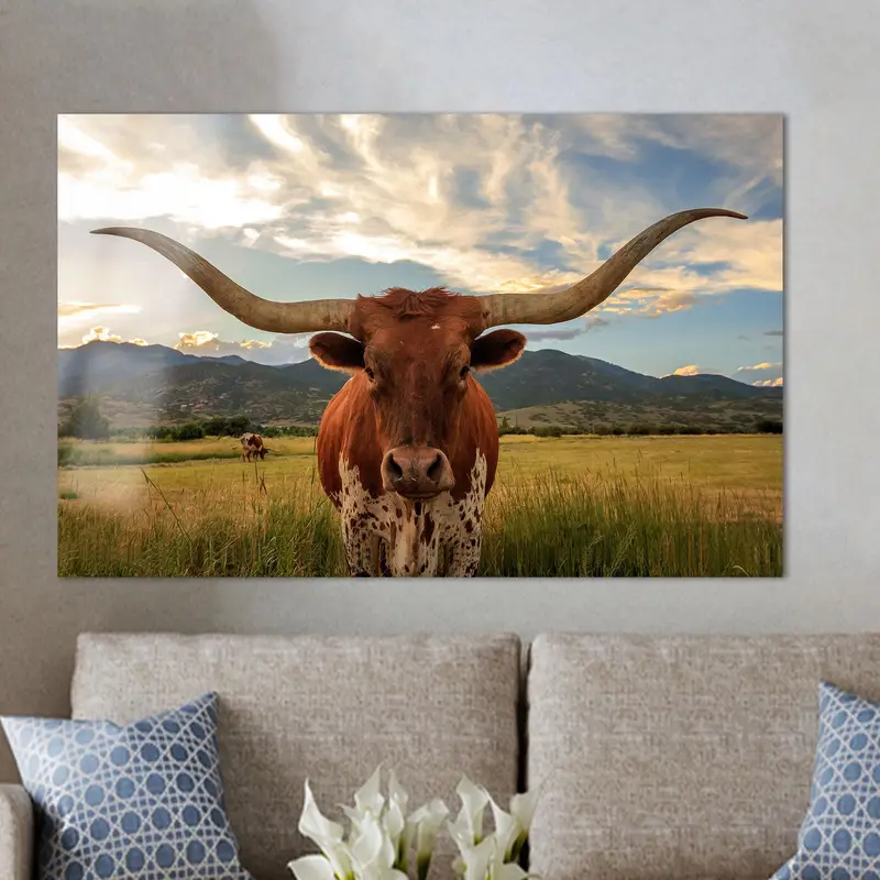 Elegant Farmhouse Bull Canvas Print for American Man Cave Decor