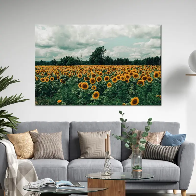 Modern Sunflower Field Landscape Printed Canvas for Trendy Kitchen Decor