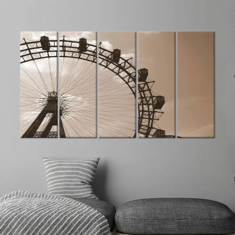 Modern Ferris Wheel Park Landscape: Printed Canvas Art for Office