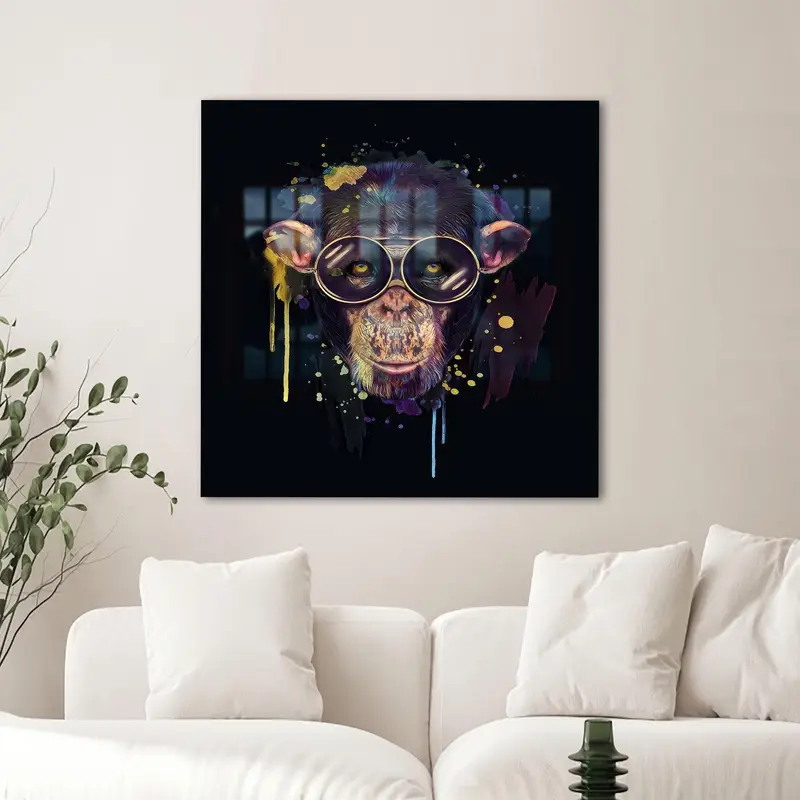 Modern Monkey Abstract: Elegant Black Printed Canvas Art