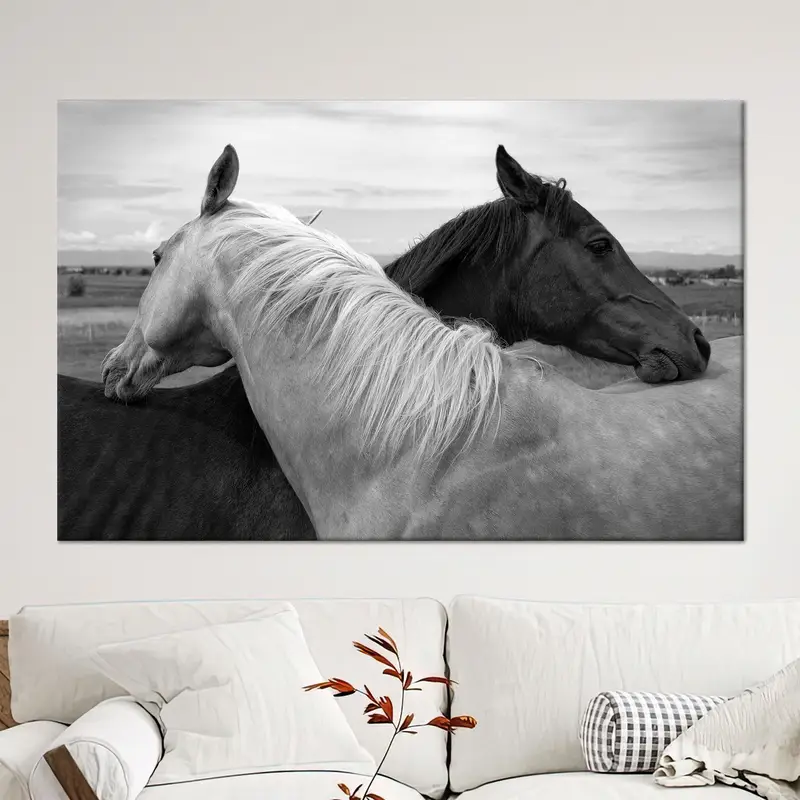 Modern Black and White Horse Canvas for Elegant Office Decor
