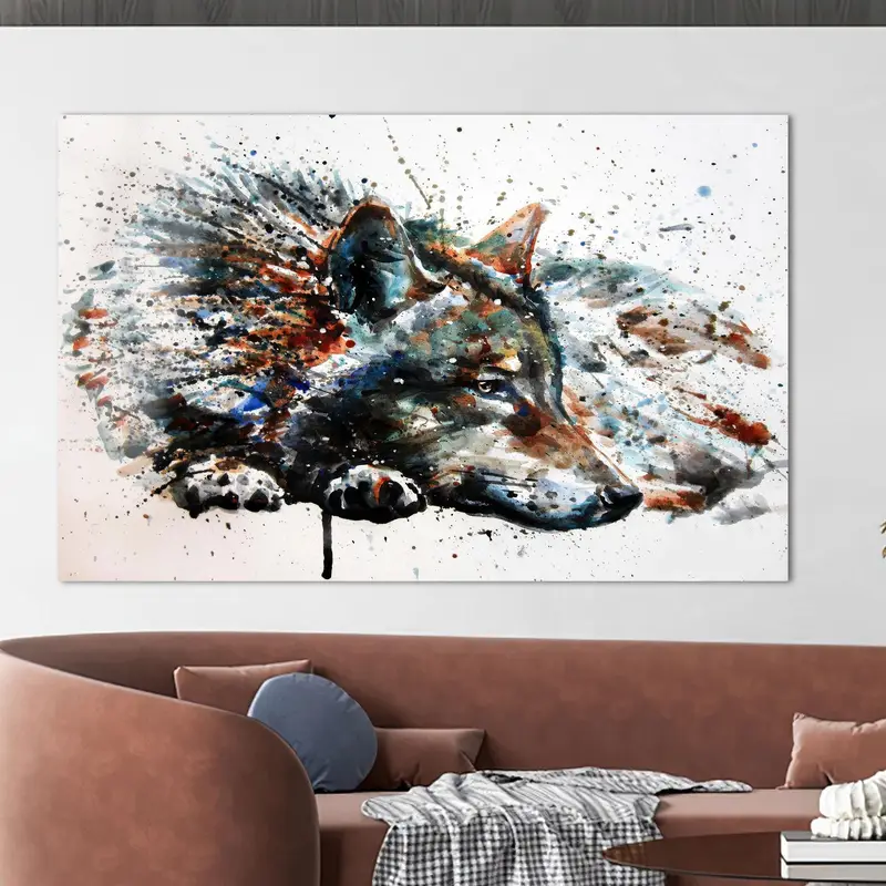 Modern Wolf Canvas Art: Wolf Lover Gift for Loft & Man Cave