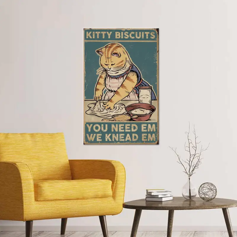 Printed Canvas: Cute Cat Chef in Bakery Kitchen Scene