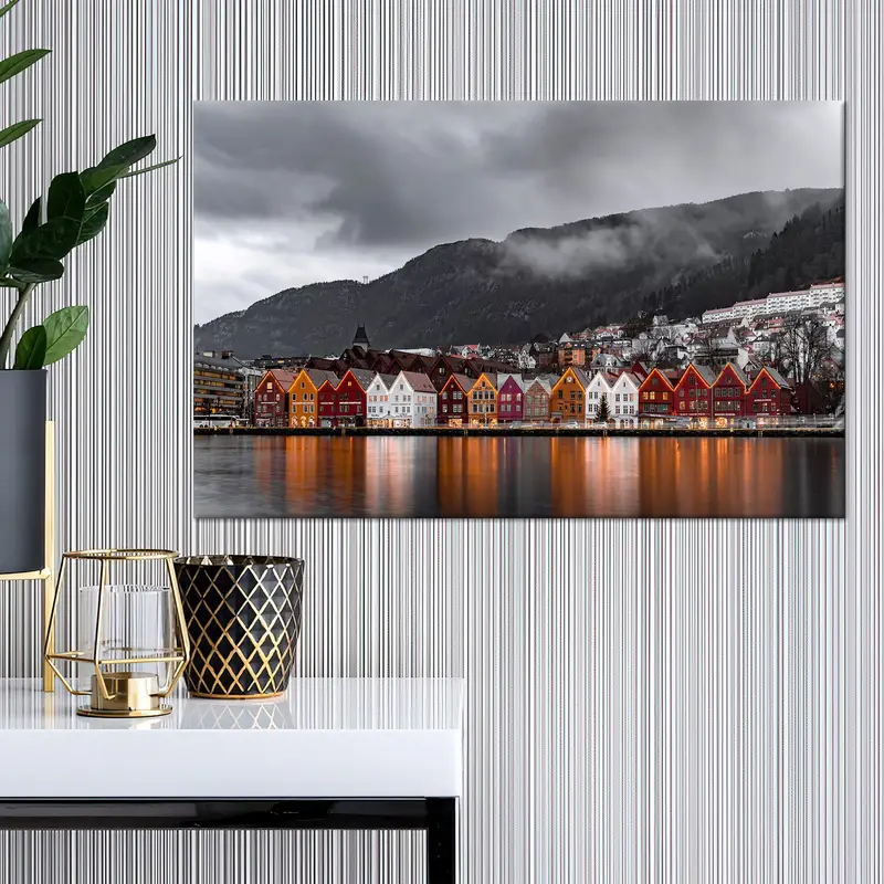 Elegant Norway Mountain Farmhouse Canvas Print - Coastal Charm