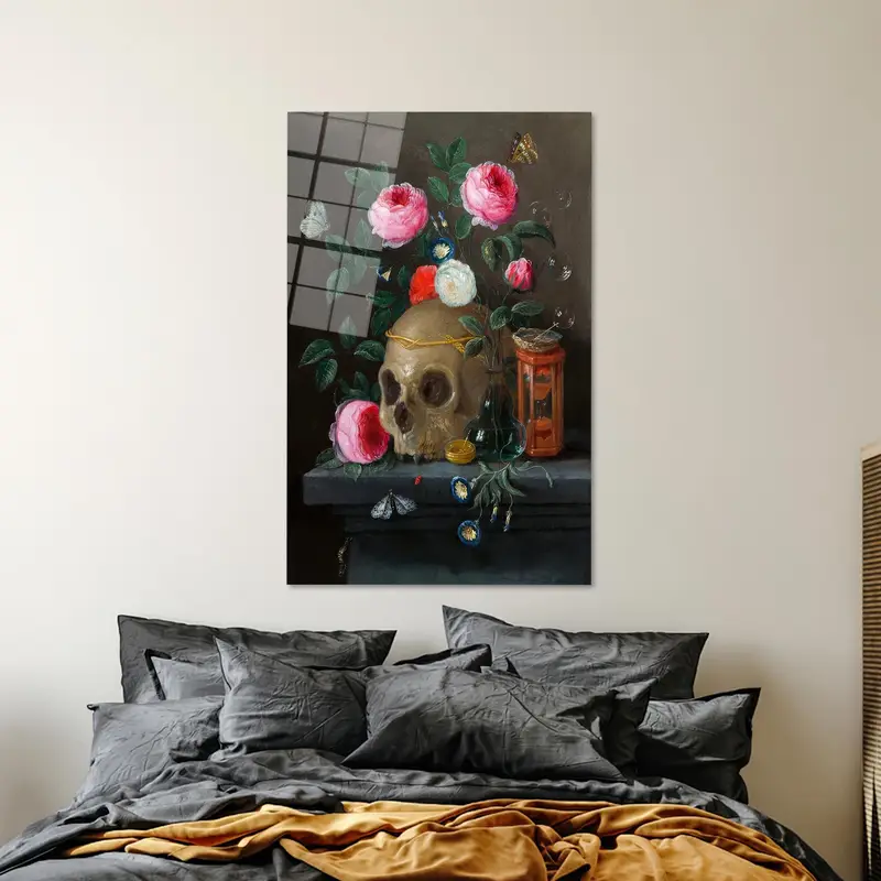 Elegant Skull & Floral Printed Canvas - Artistic Home Decor