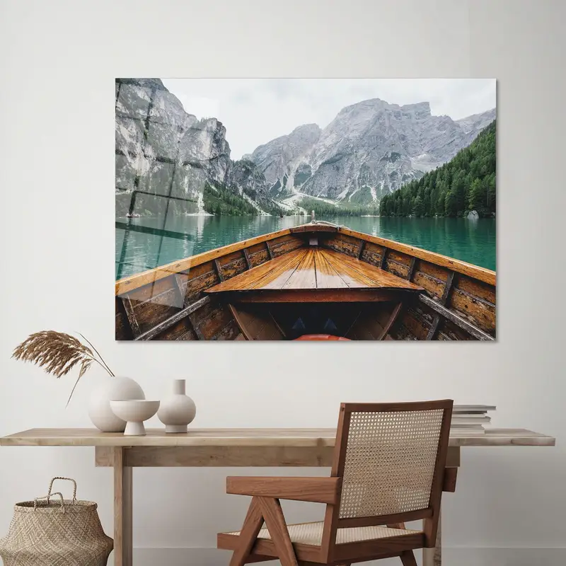 Elegant River Mountain Nature Landscape Farmhouse Canvas Print