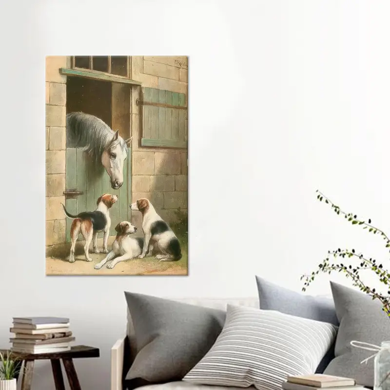 Elegant Coastal Farmhouse Canvas: Horse & Dog Serenity Print