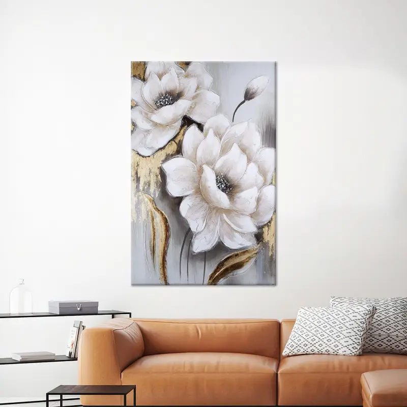 Luxury Gold Saloon Canvas: Modern White Flower Art Print