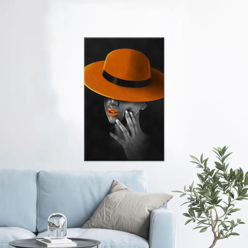 Luxury Black & Orange Canvas: Modern African Woman with Hat