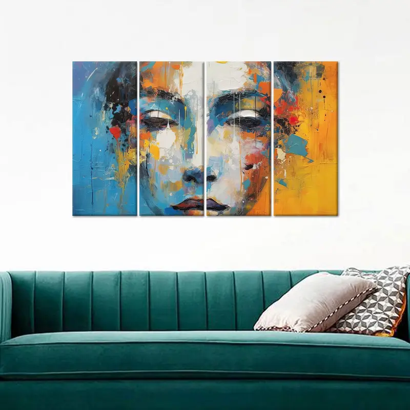 Elegant Abstract Woman Portrait Canvas Print - Vibrant Blue & Orange