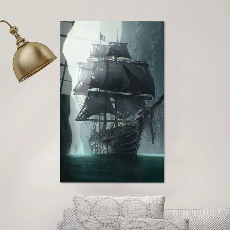 Elegant Black and White Pirate Canvas for Coastal Man Cave