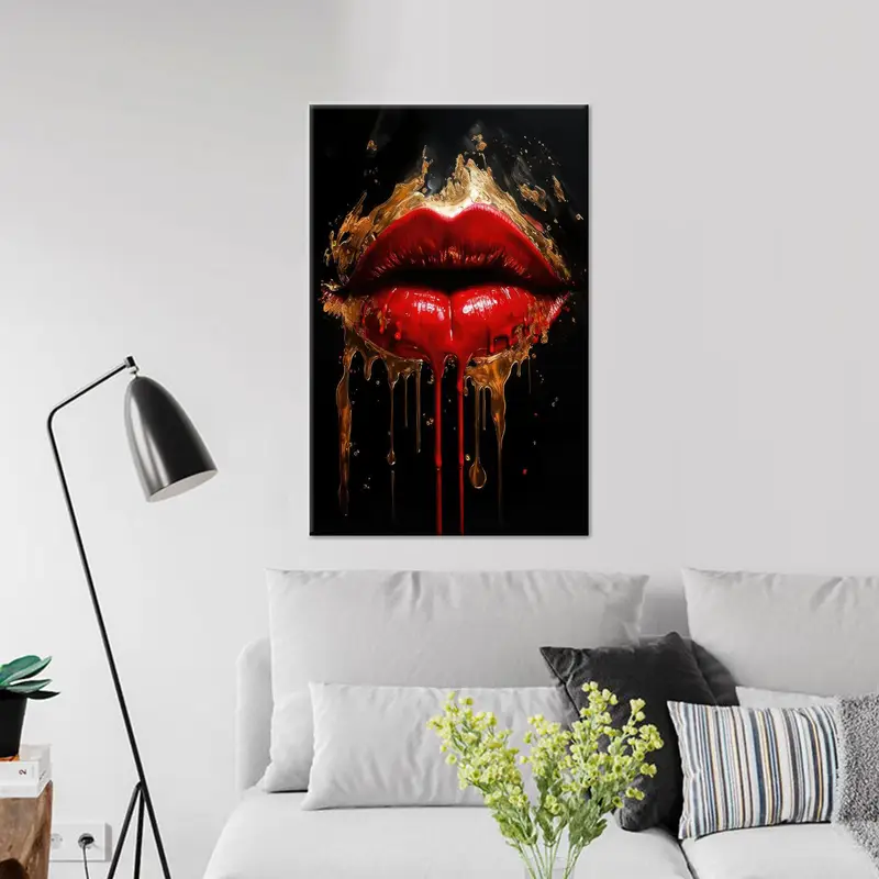 Elegant Red Lip Abstract Canvas: Luxury Wall Art Print