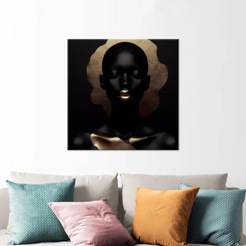 Golden Lip African Woman Luxury Canvas Print - Black & Gold