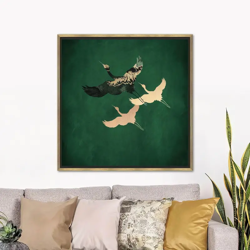 Modern Crane Abstract Canvas: Japanese Minimal Art Print