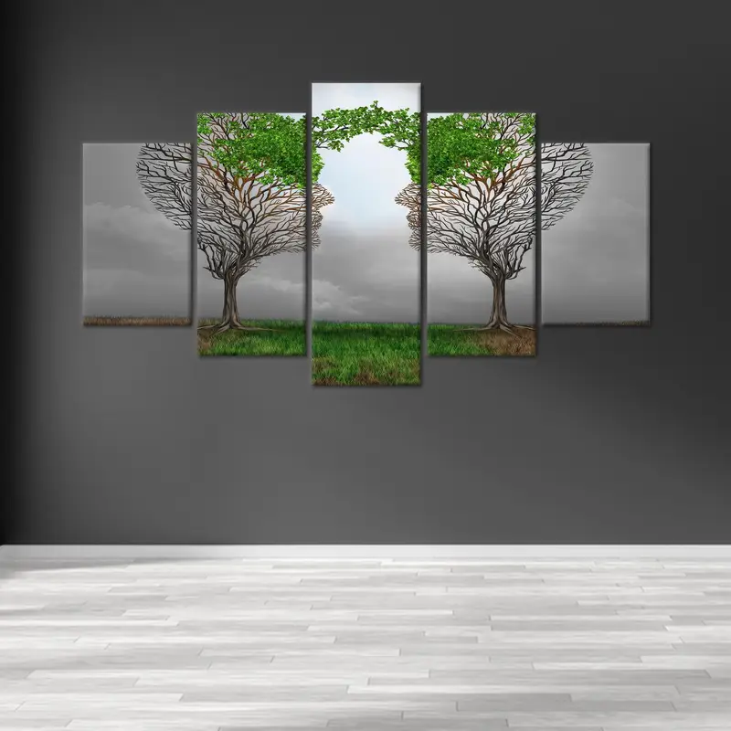 Hopeful Spring Canvas: Abstract Tree Couple Therapy Room Art