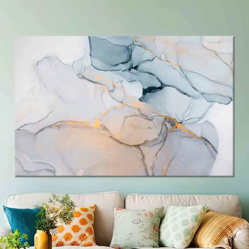 Elegant Blue Marble Canvas: Soft Tones, Luxury Decor