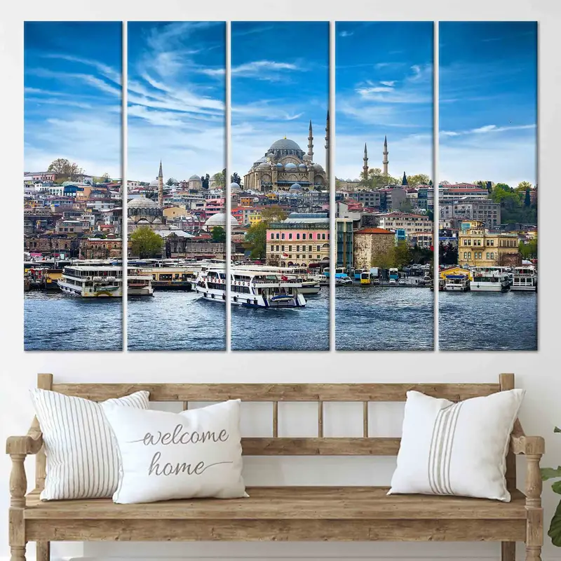 Istanbul Seascape Canvas: Turkish Islamic Art Print