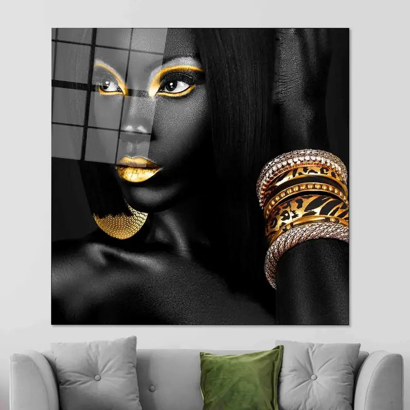 Elegant Gold Lip Canvas Art - Luxury Black Woman Print
