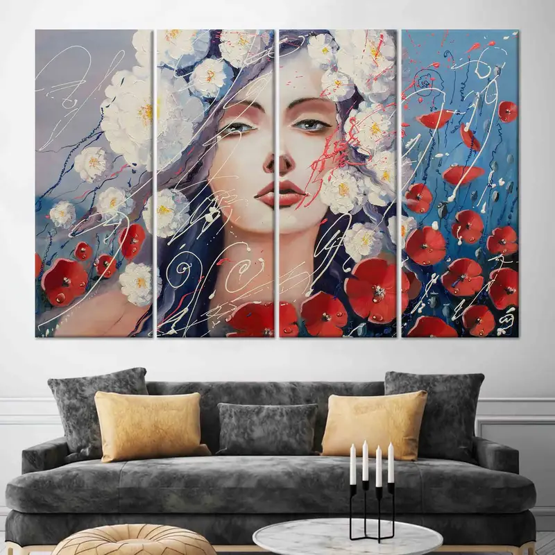 Elegant Floral Woman Portrait Canvas Print for Girl Room
