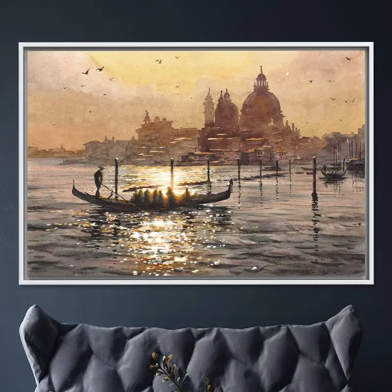 Vintage Venice Seascape Canvas: Grand Canal Sunset Print